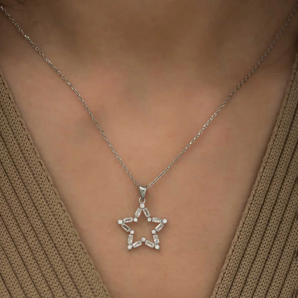 Gümüş Baget Taşlı Yıldız Kolye