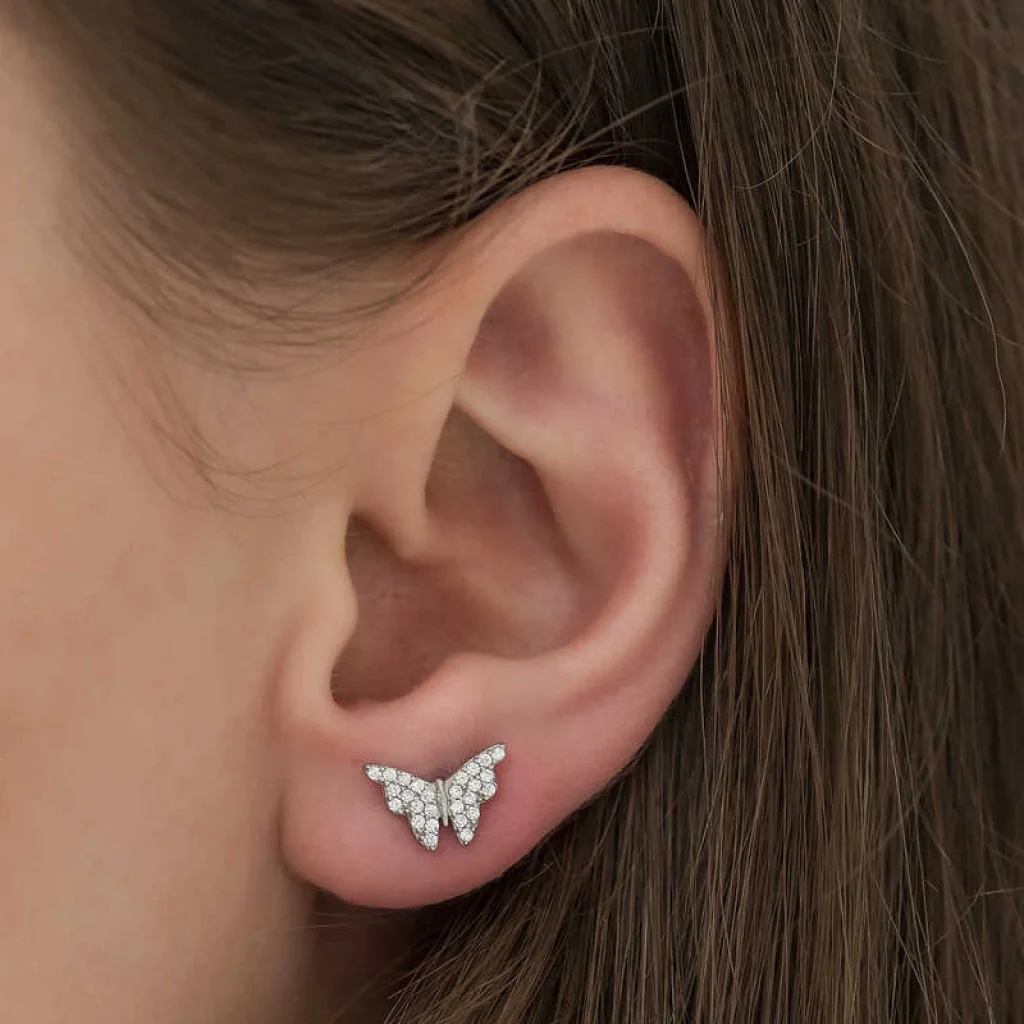 Her yaştan kadının stiline uyum sağlayabilecek farklı küpe modellerinin yer aldığı koleksiyonumuzda birbirinden özgün tasarımlı küpe modelleri sizleri bekliyor. Kelebek figürü kullanılarak hazırlanan küpe aklınızı başınızdan alacak. Günlük kullanıma uygun bir model olan küpe her an sizlerle birlikte. Göz kamaştıran yapısıyla tasarlanmış gümüş kelebek küpeyi severek kullanacaksınız. Bu koleksiyonda hem kendiniz, hem de sevdikleriniz için mutlaka uygun bir küpe bulacaksınız. Gümüş beyaz kelebek küpe, 925 ayar gümüşten imal edilmiştir. Gümüş üzerine rodyum kaplama yapılmıştır. Rodyum kaplama yapılan gümüş bayan küpeler parlaklığını uzun süre muhafaza eder, oksitlenmesi gecikir. Üzerinde bulunan taşlar zirkondur. Tüm gümüş bayan küpelerde olduğu gibi bu gümüş beyaz kelebek küpe modeli de el emeği ile üretilmiştir. Gümüş ve değerli taşlar nedeniyle belirtilen ortalama ürün ağırlığında ± %10 sapma olabilmektedir.