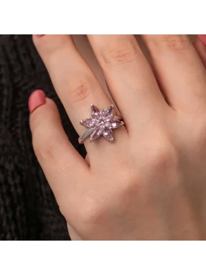 Gümüş Çiçek Desenli Kadın Yüzük