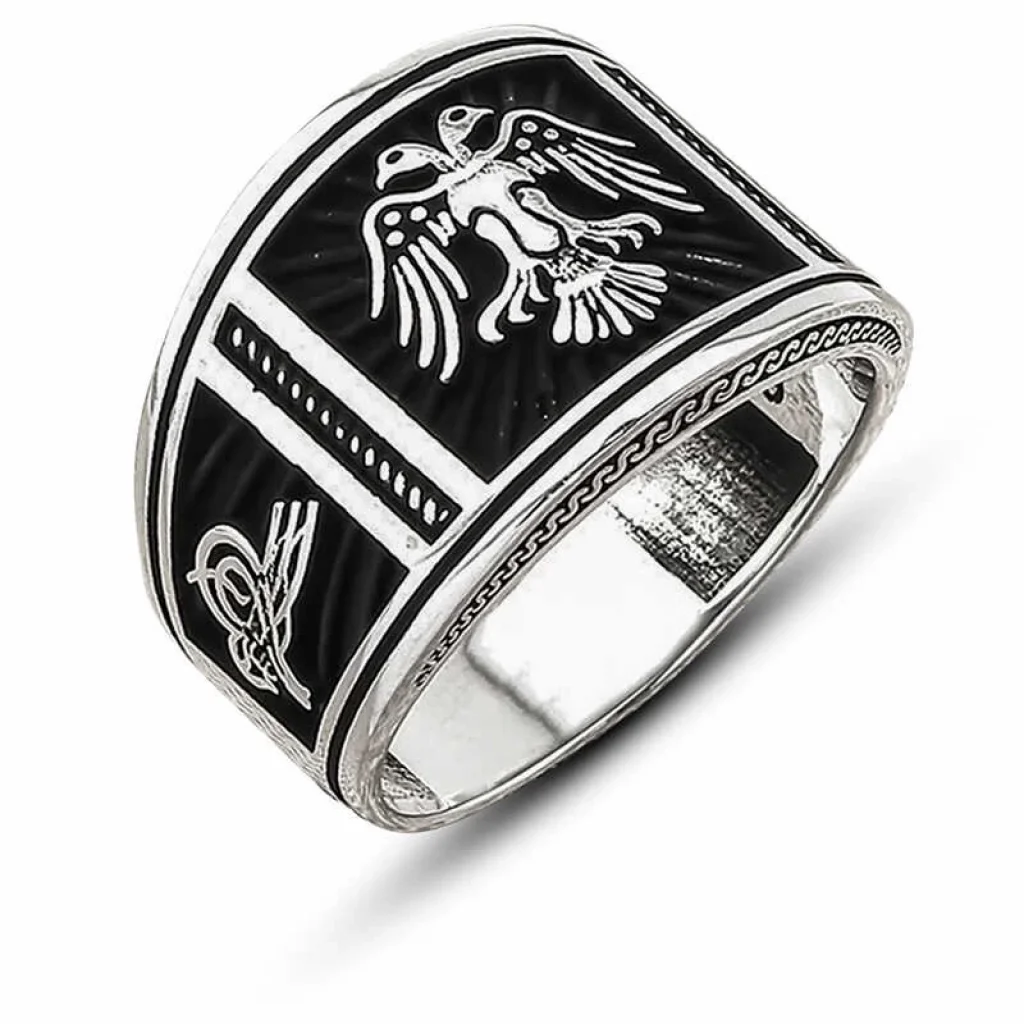 Gümüş Çift Başlı Kartal Erkek Yüzük