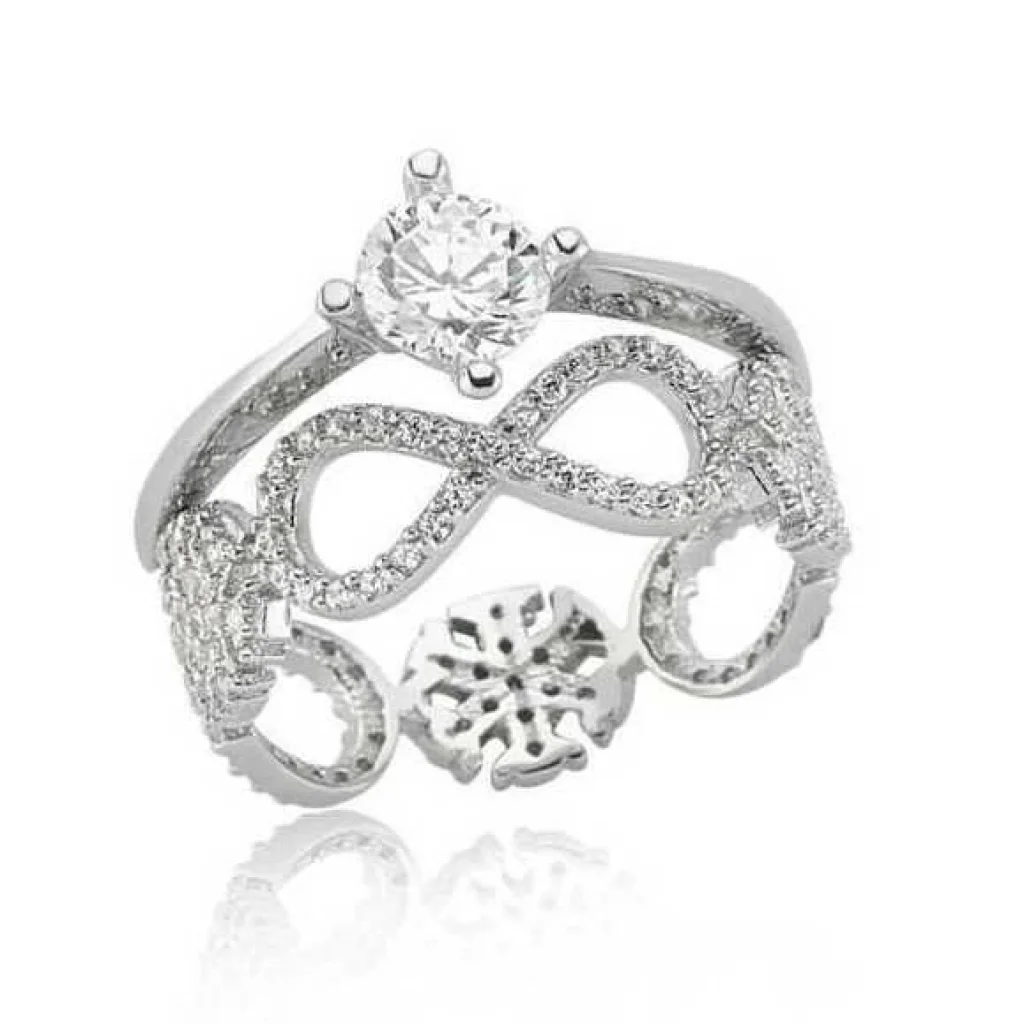 Gümüş Çift Taraflı Sonsuzluk Tek Taş Yüzük