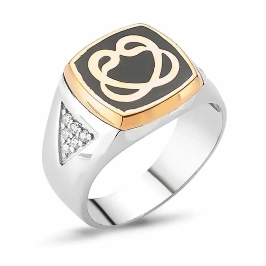 Vav harfi insanların anne karnındaki duruşunu temsil etmektedir. Ana rahmindeki bebek anlamını da taşır. Vav harfinin anlamı oldukça derindir. Vav harfi ayrıca secdeye varan edepli bir kulu sembolize eder... Doğum tek vav, ölüm diğer vav... İkisi yanyana gelince: çifte vav... Çifte vav ebced hesabıyla 66 eder, bu da Allah demektir... Bu derin ve güzel anlamlardan yola çıkarak tasarladığımız çift vav erkek yüzüğü; kendinize yada sevdiklerinize doğum gününde, babalar gününde yada özel günlerde tercih edebilirsiniz. Bu şık yüzük 925 ayar gümüşten imal edilmiştir. Gümüş üzerine oksit kaplama yapılmıştır. Oksit kaplama yapılan yüzükler parlaklığını uzun süre muhafaza eder. Tüm erkek yüzüklerde olduğu gibi gümüş çift vav erkek yüzük de el emeği ile üretilmiştir. Gümüş ve değerli taşlar nedeniyle ürün ağırlığında ± %10 sapma olabilmektedir.