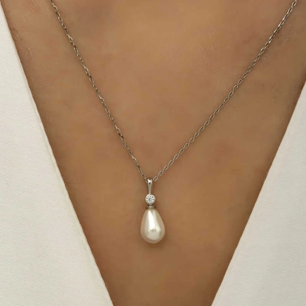 İnci sadelik ve alçak gönüllülüğü simgeler. Sade gözükmekle beraber, aslında çok kıymetli olmayı anlatır. Sevgilinize duyduğunuz aşkınızı ve duygularınızı anlatmanın en güzel yoludur inci. Parıltının, ışığın, aydınlığın ve umudun sembolüdür. Her bayanın aksesuarları arasında bulundurması gereken modası hiç bir zaman geçmeyecek olan gümüş damla inci bayan kolye ile duygularınızı sevdiğiniz kadının teninde hissettirmeye ne dersiniz... 925 ayar gümüşten imal edilmiştir. Gümüş üzerine rodyum kaplama yapılmıştır. Rodyum kaplama yapılan gümüş inci kolyeler parlaklığını uzun süre muhafaza eder, oksitlenmeyi geciktirir. Üzerinde bulunan taş kültür incisidir. Zincir boyu ortalama 45 cm"dir. Ürünlerimizin tamamı el emeği ile üretilmiştir. Gümüş ve değerli taşlar nedeniyle belirtilen ortalama ürün ağırlığında ± %10 sapma olabilmektedir.