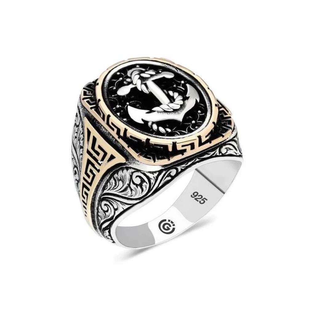 Gümüş Deniz Çapası Oval Erkek Yüzük