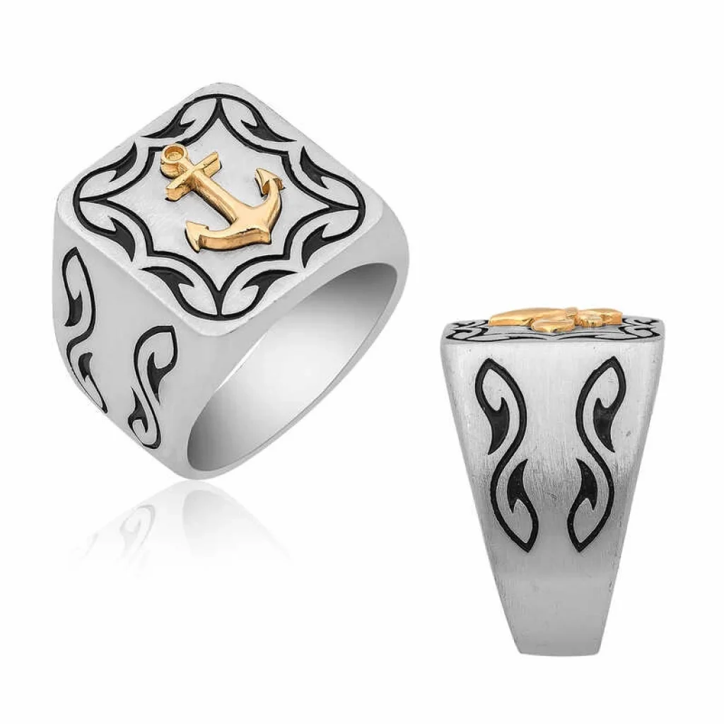 Gümüş Denizci Çapası Armalı Erkek Yüzük