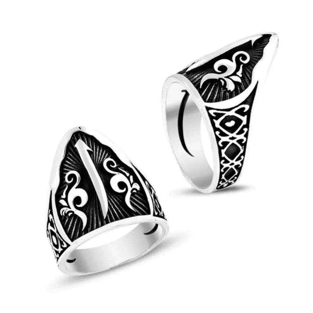 Gümüş Elif Motifli Başparmak Erkek Yüzük