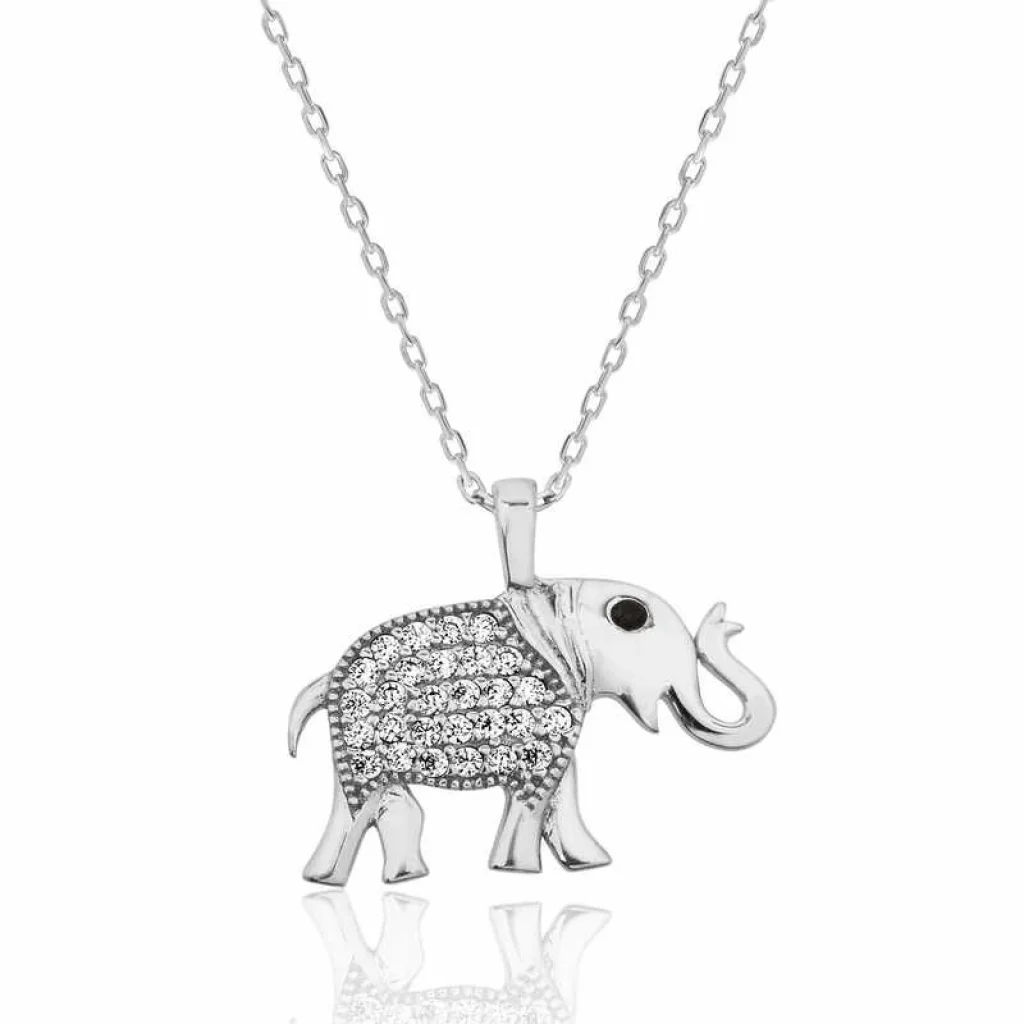 Fil; bilgelik, yetenek, iyi şans ve bereketin sembolüdür. Bu şık kolye; doğum günü hediyesi, sevgililer günü hediyesi veya annelere hediye olarak özel günlerde tercih edilebilecek mükemmel bir seçenektir. Bu anlamlı ve şık kolye; 925 ayar gümüşten imal edilmiştir. Bu bayan gümüş kolye üzerine rodyum kaplama yapılmıştır. Rodyum kaplama yapılan tüm kolyeler parlaklığını uzun süre muhafaza eder ve oksitlenmeyi geciktirir. Zincir boyu ortalama 45 cm"dir. Fil bayan kolye üzerinde bulunan taşlar zirkondur. Tüm gümüş kolyelerde olduğu gibi bu gümüş fil bayan kolye de el emeği ile üretilmiştir. Gümüş ve değerli taşlar nedeniyle ürün ağırlığında ± %10 sapma olabilmektedir.
