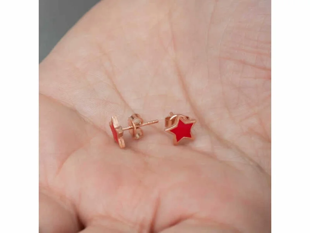 Gümüş Fosforlu Kırmızı Yıldız Küpe