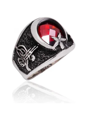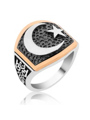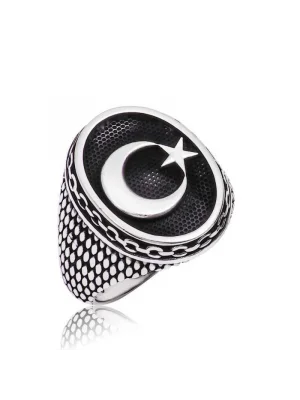 Gümüş Göktürkçe "Türk" Yazılı Ay Yıldız Erkek Yüzük