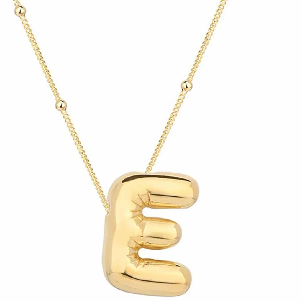 Gümüş Gold Balon E Harfi Kadın Kolye
