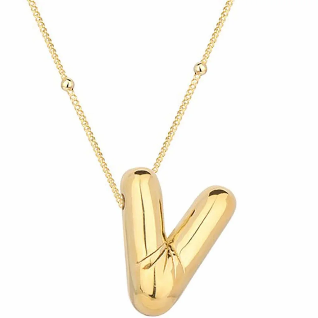 Gümüş Gold Balon V Harfi Kadın Kolye