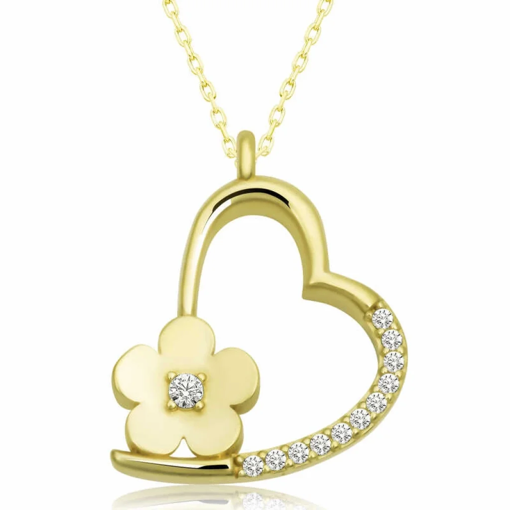 Kalp simgesi daima koşulsuz sevginin ve aşkın sembolü olmuştur. Dini öğretilerde ise kalbin gücü sınırsızdır. Çünkü kalp Yaradanın evi, bizim ise evrene açılan gerçeklik kapımızdır. Bu şık gümüş çiçekli kalp kolye; doğum günü hediyesi, sevgililer günü hediyesi veya annelere hediye olarak özel günlerde tercih edilebilecek mükemmel bir seçenektir. Gümüş çiçekli kalp kadın kolye 925 ayar gümüşten imal edilmiştir. Bu kolye üzerinde gold kaplama yapılmıştır. Gold kaplama yapılan gümüş kadın kolye modelleri parlaklığını uzun süre muhafaza eder. Üzerinde bulunan taşlar zirkondur. Tüm gümüş kadın kolye modellerimizde olduğu gibi gümüş çiçekli kalp kadın kolye modeli de el emeği ile üretilmiştir. Gümüş ve değerli taşlar nedeniyle belirtilen ortalama ürün ağırlığında ± %10 sapma olabilmektedir.