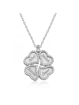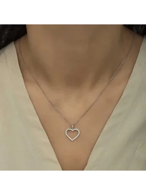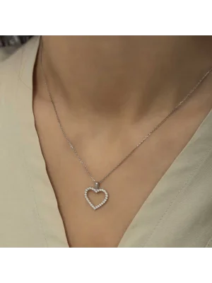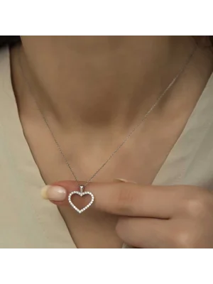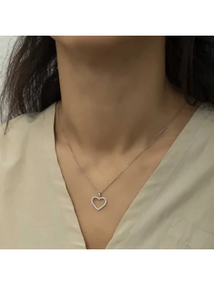 Gümüş Çiçekli Kalp Kadın Kolye