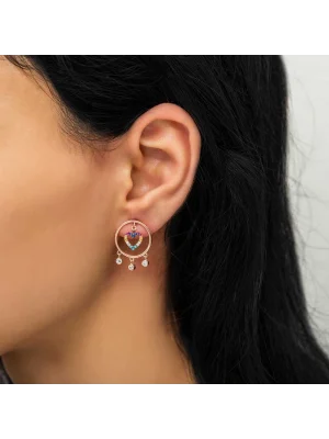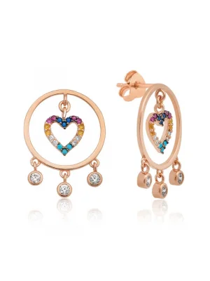 Gümüş Gold Kalp Sallantılı Kadın Küpe