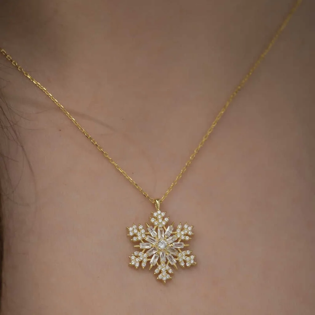 Kadınların ışıltısı, berraklığı kar tanesine benzetilip özel olarak tasarlanmıştır. Kar tanelerinin her birinin bayanlar gibi eşsiz ve ayrı kıymette olması onları özel kılan bir diğer özelliktir. Asilliği her dönemde dikkat çekmeyi başarmıştır. Bunun yanında insanların tıpkı kar taneleri gibi birbirlerine zarar vermeden de mutlu bir şekilde yaşayabileceklerini sembolize etmektedir. Bu şık kolye; doğum günü hediyesi, sevgililer günü hediyesi veya annelere hediye olarak özel günlerde tercih edilebilecek mükemmel bir seçenektir. Kolye, 925 ayar gümüşten imal edilmiştir. Gümüş üzerine altın kaplama yapılmıştır. Altın kaplama yapılan ürünler parlaklığını uzun süre muhafaza eder ve oksitlenmesi gecikir. Tüm gümüş bayan kolyelerde olduğu gibi bu gümüş gold kar tanesi bayan kolye de tamamı el emeği ile üretilmiştir. Gümüş ve değerli taşlar nedeniyle belirtilen ortalama ürün ağırlığında ± %10 sapma olabilmektedir.