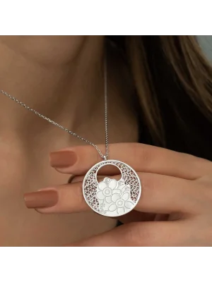 Sevdiklerinize duygularınızı ifade etmenin en özel ve zarif yolu O’na gönderebileceğiniz şık, rengarenk ve mis kokulu çiçeklerdir. Özel günlerde verilecek hediyeler arasında olan çiçek, bu kez gümüş kolye ile anlam buldu. En kaliteli, en parlak, en ışıltılı taşlarla hazırlanmış gümüş çiçek kadın kolye sevgisini bir kez daha anlatmak isteyenleri, sen bir çiçeksin demek isteyenleri bekliyor. Bu özel tasarım gümüş manolya çiçek kadın kolye 925 ayar gümüşten imal edilmiştir. Gümüş üzerine gold kaplama yapılmıştır. Gold kaplama yapılan gümüş kadın kolye modelleri parlaklığını uzun süre muhafaza eder ve oksitlenmesi gecikir. Kolye üzerinde bulunan beyaz taş zirkondur. Gümüş olan zincir boyu ortalama 45 cm"dir. Tüm kadın gümüş kolye modellerinde olduğu gibi gümüş manolya çiçeği kadın kolye de el emeği ile üretilmiştir. Gümüş ve değerli taşlar nedeniyle belirtilen ürün ağırlığında ± %10 sapma olabilmektedir.