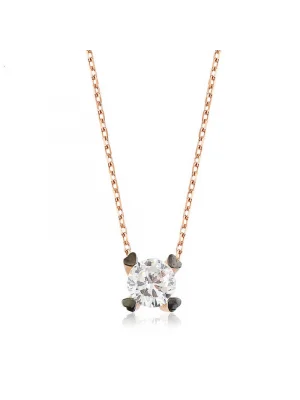 Gümüş Gold Minimal Yuvarlak Tek Taş Kadın Kolye