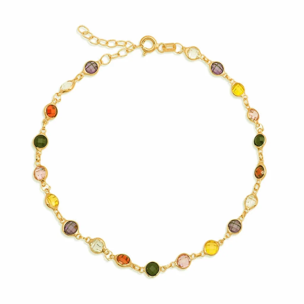 Son dönemlerin popüler takıları arasından öne çıkan renkli taşlı bileklik modelleri, özellikle yaz aylarında sıklıkla tercih ediliyor. Farklı zarif nüanslarla zenginleştirilen takılar, bileğinizde son derece asil ve şık bir duruş bırakıyor. Hem gece hem de gündelik kıyafetlerinizle kullanabileceğiniz bileklikler, şıklığınızı tamamlamaya yardımcı oluyor. Renkli taşlı bileklik modası özel günlerde asil duruşunuzla fark edilmenizi sağlıyor. Takı tarzınıza yepyeni bir dokunuş yapmak veya sevdiklerinize unutamayacakları güzel bir armağan sunmak için siz de yenilikçi bileklik modellerimize göz atarak güzel bir seçim yapabilirsiniz. Ürün hediye kutusunda gönderilecektir. Bu bileklik üzerinde gold kaplama vardır. Gold kaplama yapılan ürünler parlaklığını uzun süre muhafaza eder, oksitlenmesini geciktirir. Ürünlerimizin tamamı el emeği ile üretilmiştir. Gümüş ve değerli taşlar nedeniyle ürün ağırlığında ± %10 sapma olabilmektedir.