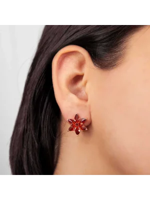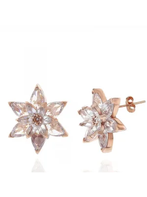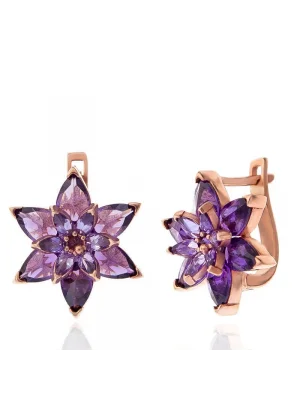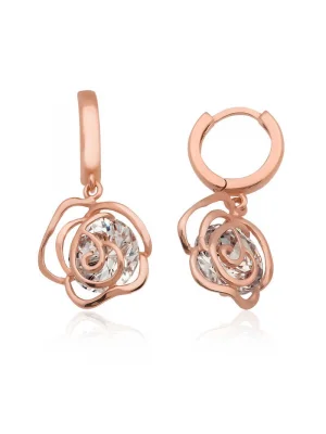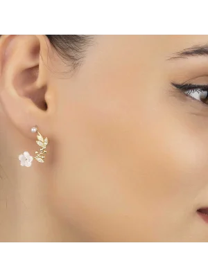 Gümüş Gold Sallantılı Çiçek Desenli Kadın Küpe