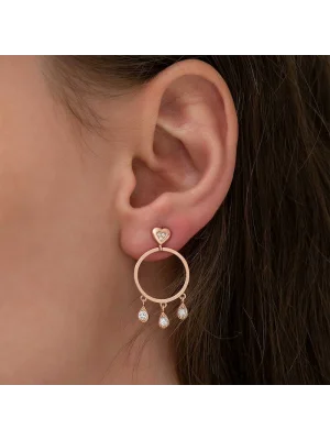 Gümüş Gold Sallantılı Kalp Kadın Küpe
