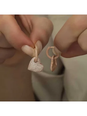 Kalp simgesi daima koşulsuz sevginin ve aşkın sembolü olmuştur. Dini öğretilerde ise kalbin gücü sınırsızdır. Çünkü kalp Yaradanın evi, bizim ise evrene açılan gerçeklik kapımızdır. Bu şık gümüş kalp küpe; doğum günü hediyesi, sevgililer günü hediyesi veya annelere hediye olarak özel günlerde tercih edilebilecek mükemmel bir seçenektir. Gümüş kalp kadın küpe 925 ayar gümüşten imal edilmiştir. Bu küpe üzerinde gold kaplama yapılmıştır. Gold kaplama yapılan gümüş kadın küpe modelleri parlaklığını uzun süre muhafaza eder. Üzerinde bulunan taşlar zirkondur. Tüm gümüş kadın küpe modellerimizde olduğu gibi gümüş kalp kadın küpe modeli de el emeği ile üretilmiştir. Gümüş ve değerli taşlar nedeniyle belirtilen ortalama ürün ağırlığında ± %10 sapma olabilmektedir.