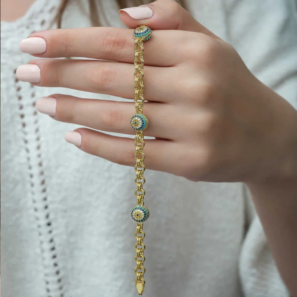 Gümüş Gold Sosyete Gözlü Zincir Bileklik