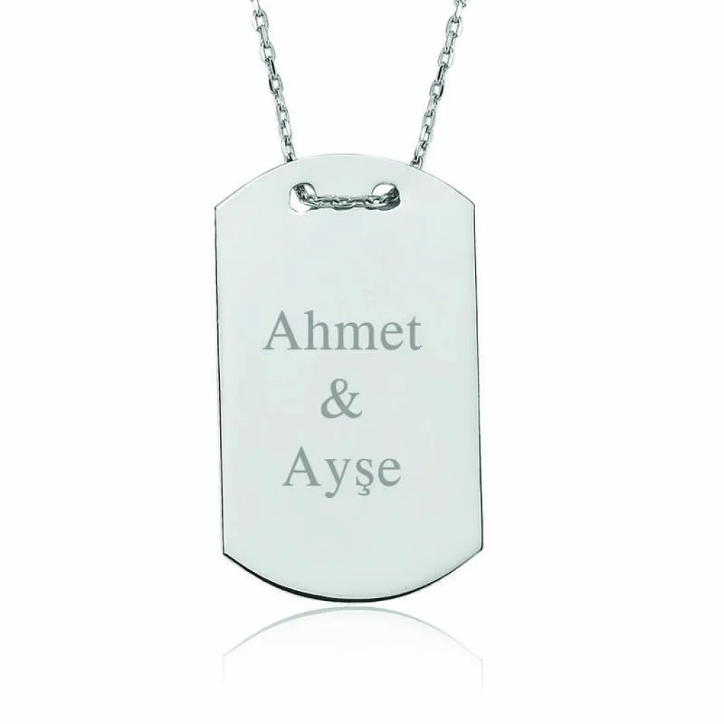 Gümüş İsimli Asker Künyesi Bayan Kolye