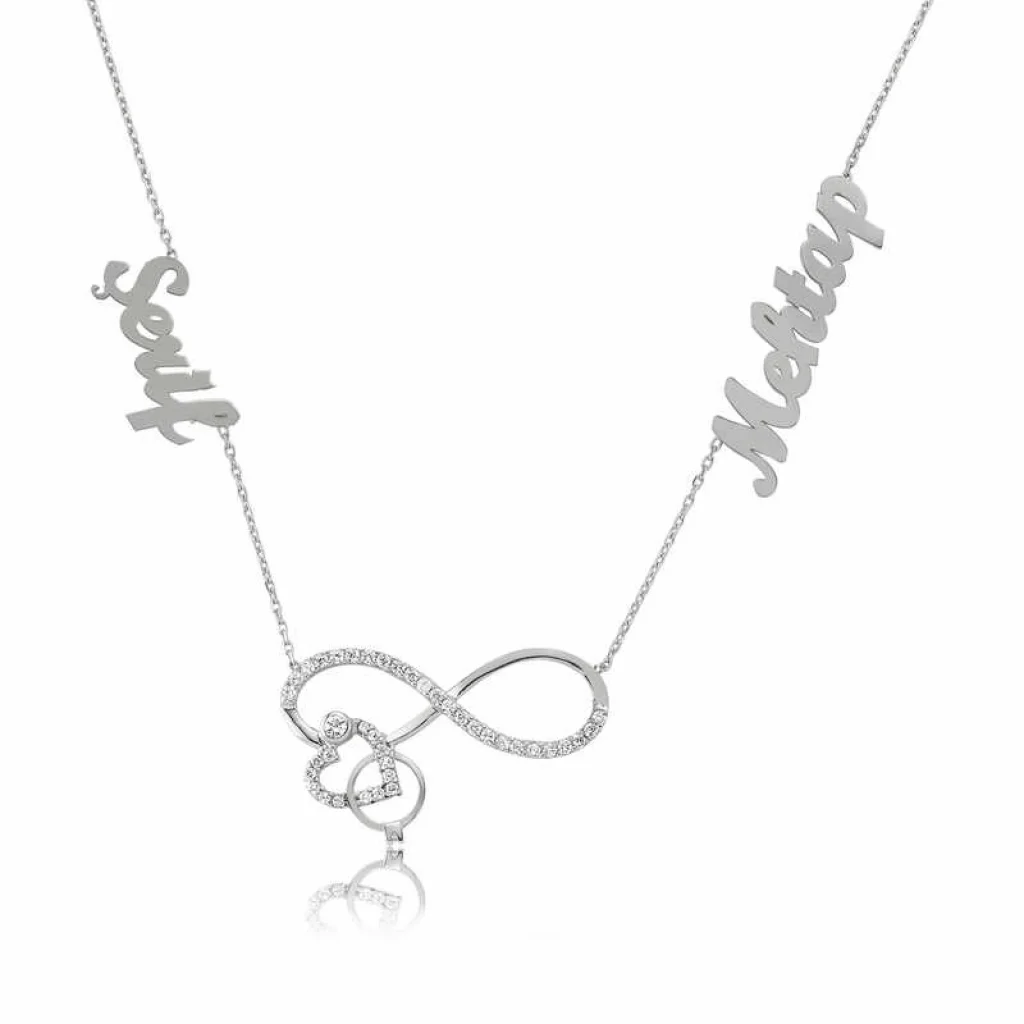 Gümüş İsimli Kalpli Sonsuzluk Bayan Kolye