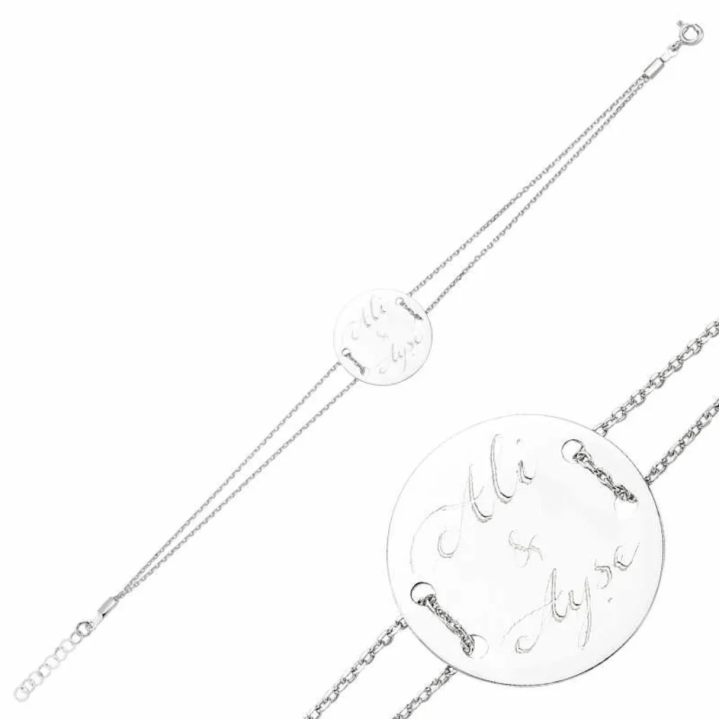 Gümüş İsimli Yuvarlak Plaka Bayan Bileklik