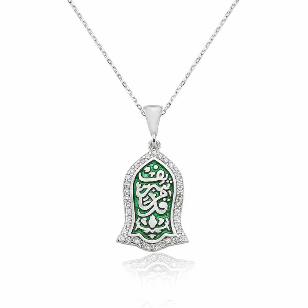 Kademi Şerif Hz. Muhammed’in ayak izidir. Nalı Şerif olarak da bilinir. Bu anlamda manevi değeri yüksek olan bu kolye severek kullanabileceğiniz ve sevdiklerinize verebileceğiniz güzel bir hediye olacaktır. Bu şık kolye tasarımı 925 ayar gümüşten imal edilmiştir. Gümüş üzerine rodyum kaplama yapılmıştır. Rodyum kaplama yapılan gümüş bayan kolye modelleri parlaklığını uzun süre muhafaza eder, oksitlenmesi gecikir. Kolye üzerinde bulunan taşlar zirkondur. Kolyenin zinciri 925 ayar gümüşten imal edilmiştir boyu ortalama 45 cm"dir. Tüm bayan kolye modellerimizde olduğu gibi Kademi Şerif bayan gümüş kolye de el emeği ile üretilmiştir. Gümüş ve değerli taşlar nedeniyle belirtilen ortalama ürün ağırlığında ± %10 sapma olabilmektedir.