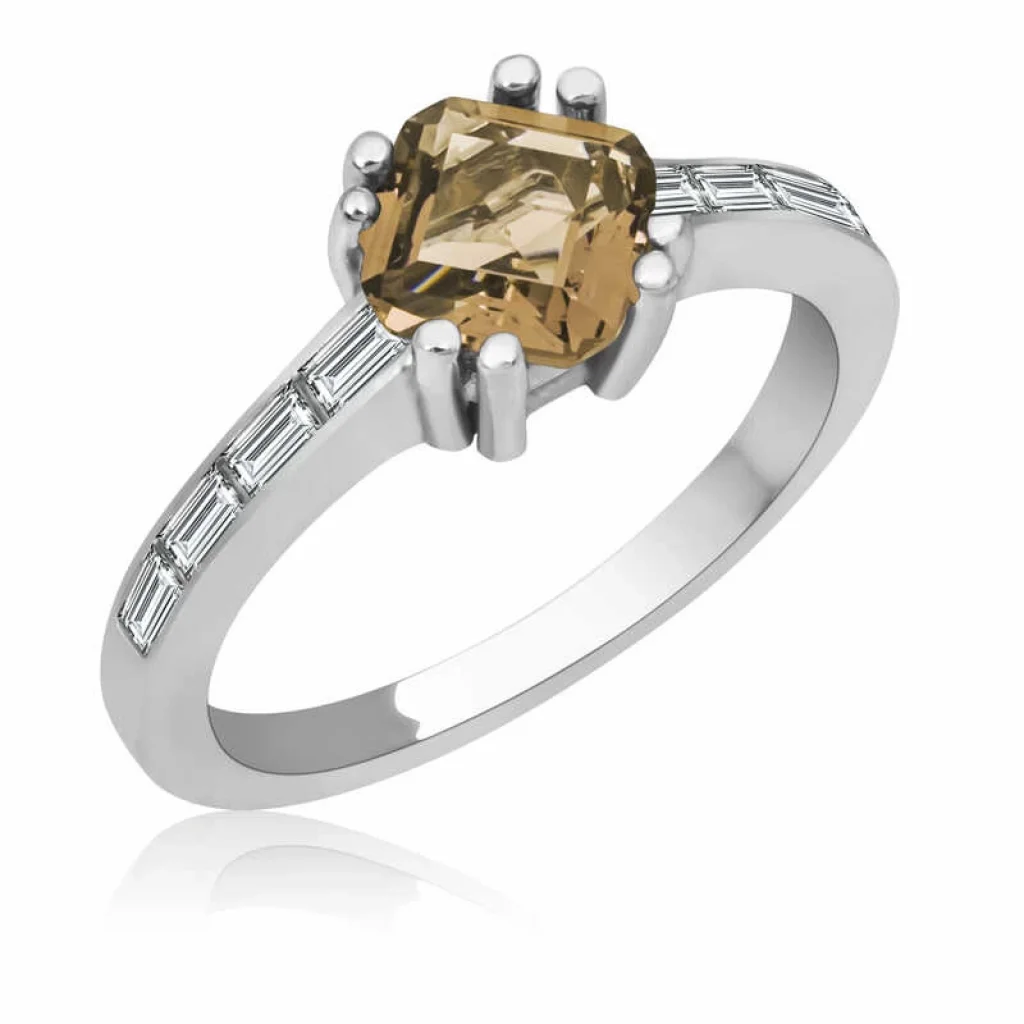 Gümüş Kahverengi Baget Tek Taş Kadın Yüzük