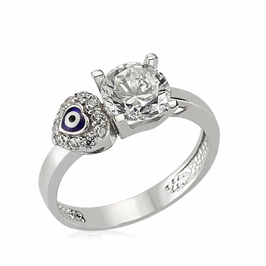 Gümüş Kalp Nazarlı Tek Taş Bayan Yüzük