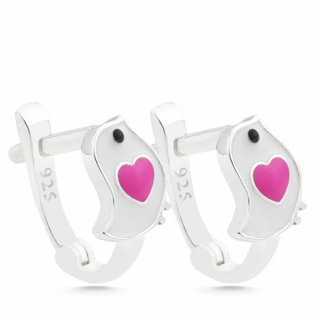 Gümüş Kalpli Kuş Çocuk Küpesi