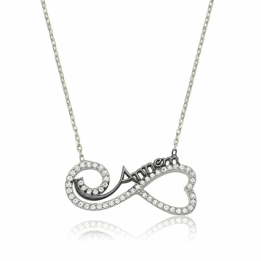 Gümüş Kalpli Sonsuzluk Annem Kolye