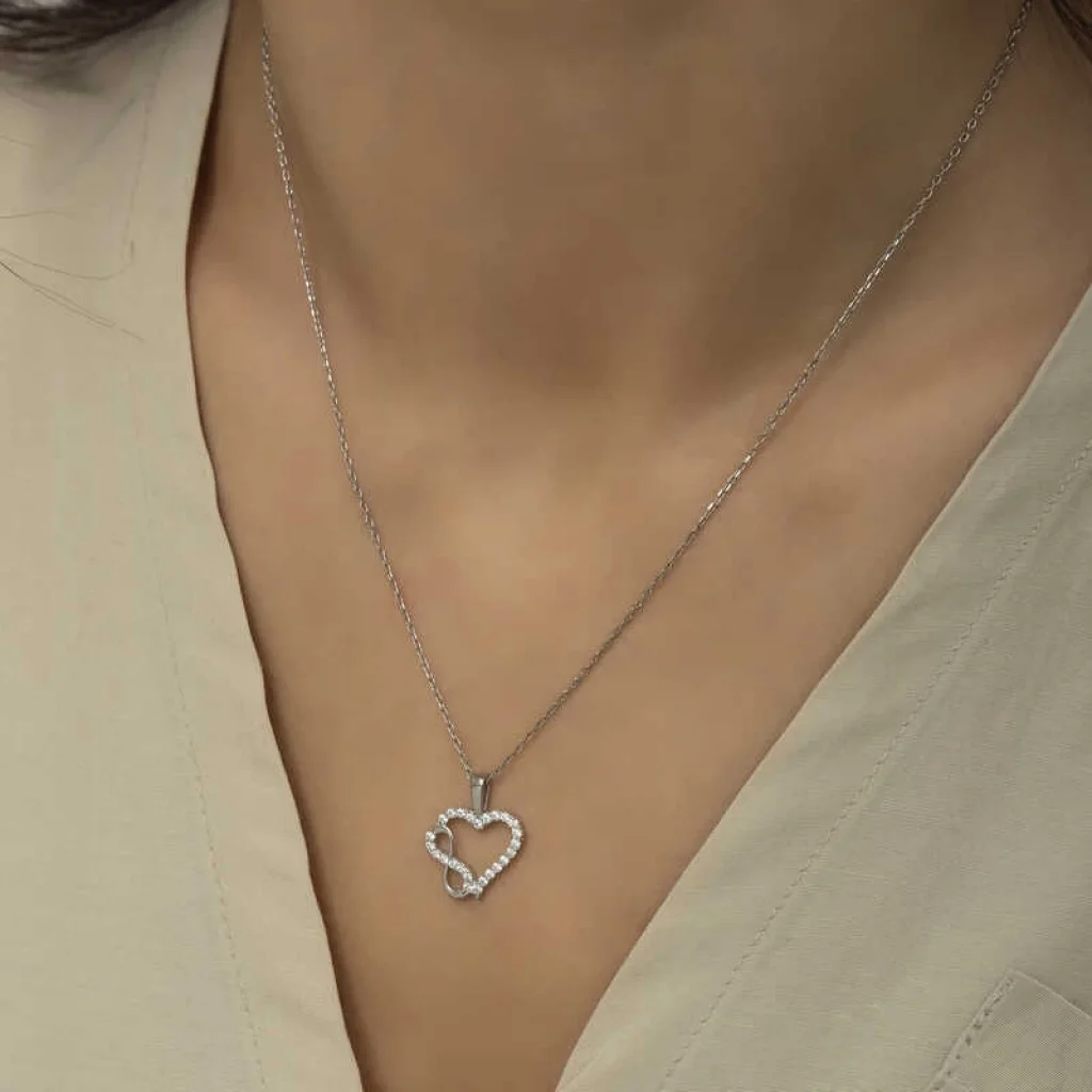 Gümüş Kalpli Sonsuzluk Bayan Kolye