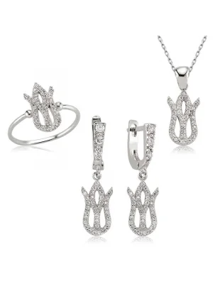 Kaplan büyük gücün ve iktidarın simgesidir Bu güçten esinlenerek tasarlanan set ile sevdiklerinizi mutlu etmeye ne dersiniz? Bu şık set; 925 ayar gümüşten imal edilmiştir. Gümüş üzerine rodyum kaplama yapılmıştır. Rodyum kaplama yapılan setler parlaklığını uzun süre muhafaza eder. Tüm kadın yüzüklerinde olduğu gibi gümüş kaplan figürlü kadın set de el emeği ile üretilmiştir. Bu şık seti; kendinize yada sevdiklerinize doğum gününde, ya da özel günlerde hediye edebilirsiniz. Gümüş ve değerli taşlar nedeniyle ürün ağırlığında ± %10 sapma olabilmektedir.