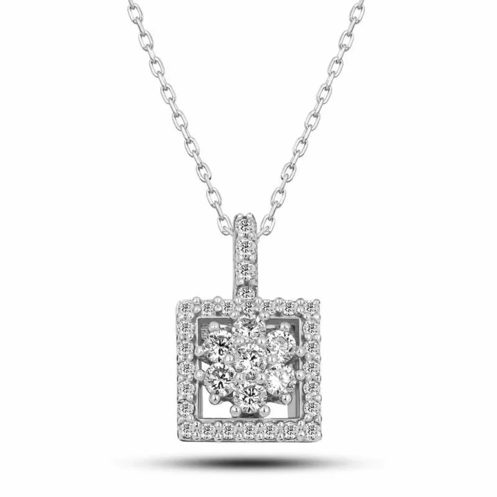 Gümüş Kare Zirkon Taşlı Kadın Kolye