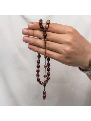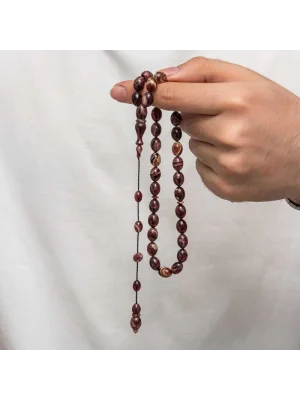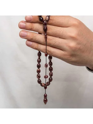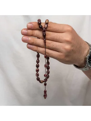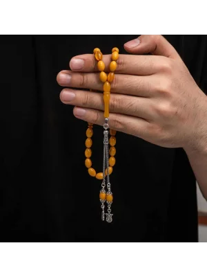 Kehribar, çam ağacı reçinesinin toprak altında uzun yıllar boyunca birikerek oluşan bir maddedir. Hemen hemen taş ile aynı sertliktedir fakat yoğunluğu düşüktür. Çam kokusu yayar. Oluşumu uzun zaman aldığından ve yapay olarak yapılamadığından değerli bir maddedir. Sıkma kehribar ise kehribar taşından farklı olarak onun özelliklerini taşıyan, görüntü itibariyle ona benzeyen fakat gerçek olmayan bir malzemedir. Ülkemizde ve dünyanın bir çok yerinde kehribar taşından çeşitli malzemeler üretilmiştir. Ülkemizde en yaygın olarak tesbih üretilmektedir. Kehribar tesbihler elde ısındıkça kehribar benzeri bir koku verir ve renk değiştirir. Bir çok rengi vardır. Hatta iki rengin birleşiminden oluşan kehribar tesbih modelleri de vardır. Genellikle gümüş püskül ile kullanılır veya sistemli olarak da kullanılabilir. Ülkemizin güzide tesbih ustaları bu malzemeyi sıklıkla işlemek suretiyle çeşitli sanat eserleri meydana getirirler. Bu tesbihler de koleksiyonerler tarafından alınıp satılmaktadır. Gümüş 1000 ayar kazaz püsküllü sıkma kehribar tesbih modeli de günlük hayatta kullanılabilecek çok şık bir tesbih çeşididir. Özel günlerin vazgeçilmez hediyesi sıkma kehribar tesbihler erkekler için doğum günü, sevgililer günü ve babalar günü gibi özel zamanlarda hediye olarak tercih edilebilir. Gümüş kazaz püsküllü sıkma kehribar tesbih modeli diğer kehribar tesbih modellerinde olduğu gibi tamamen el emeği ile imal edilmiştir.