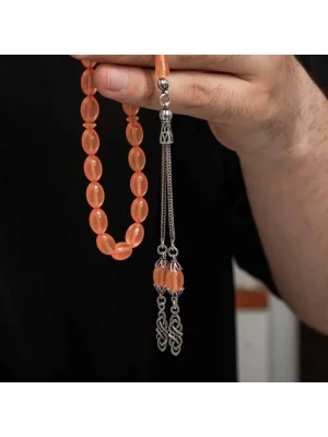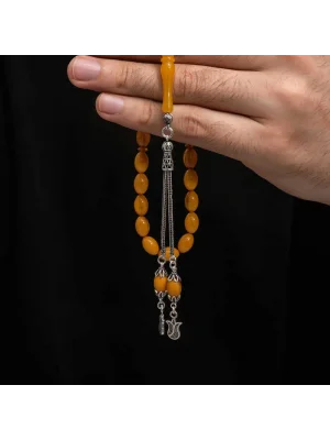Gümüş Kazaz Püsküllü Sıkma Kehribar Tesbih