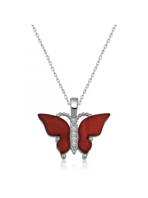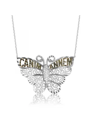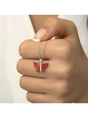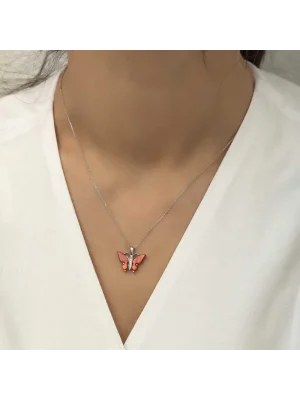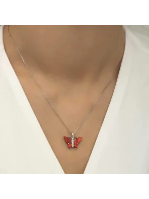 Kelebek; kadınlarca tercih edilen en popüler motiflerden biridir. Sevenlerine doğanın gizemini ve insan hayal gücünün zenginliğini hatırlatır. Özgürlüğü masumiyeti ve saflığı simgeleyen kelebekler, tertemiz sevginin ve aşkın ifadesidir. Sizin olduğu kadar sevdiklerinizin de keyifle takacağı kelebek kadın kolye, sevdiğinize en güzel hediyelerden biri olacaktır. Kolye 925 ayar gümüşten imal edilmiştir. Gümüş üzerine rodyum kaplama yapılmıştır. Rodyum kaplama yapılan gümüş kadın kolyeler parlaklığını uzun süre muhafaza eder ve oksitlenmesini geciktirir. Gümüş olan zincir boyu ortalama 45 cm"dir. Tüm gümüş kadın kolyelerde olduğu gibi gümüş kelebek kadın kolye modeli de el emeği ile üretilmiştir. Gümüş ve değerli taşlar nedeniyle belirtilen ortalama ürün ağırlığında ± %10 sapma olabilmektedir.