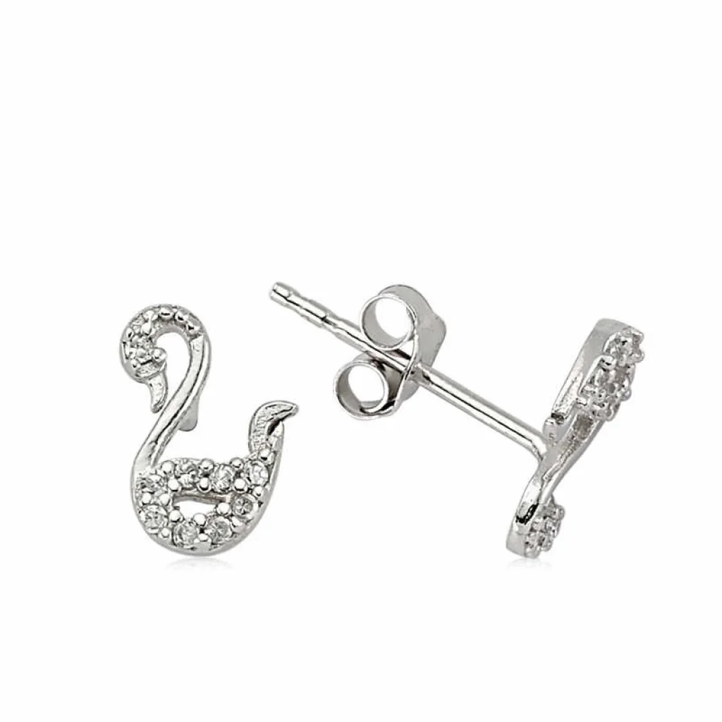 Gümüş Kuğu Çivili Küpe