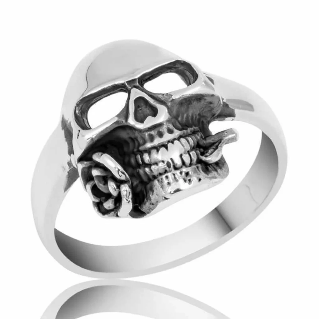 Kuru kafanın gizem ve ölüm anlamı vardır. Gizemli görünmeyi sevenler için kuru kafa yüzük modelleri harika takı şeçeneklerinden biridir. Kuru kafa erkek yüzük 925 ayar gümüşten imal edilmiştir. Gümüş üzerine oksit kaplama yapılmıştır. Oksit kaplama yapılan gümüş erkek yüzükleri otantik bir görünüme sahip olur. Diğer gümüş yüzüklerde olduğu gibi gümüş kuru kafa erkek yüzük modeli de tamamen el emeği ile üretilmiştir. Gümüş ve değerli taşlar nedeniyle belirtilen ortalama ürün ağırlığında ± %10 sapma olabilmektedir.