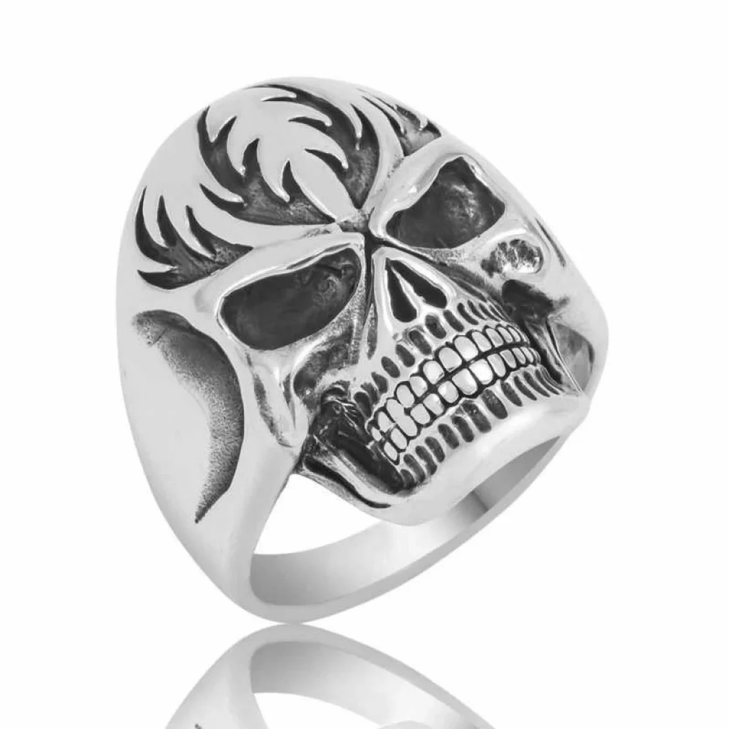 Kuru kafanın gizem ve ölüm anlamı vardır. Kuru kafa el erkek yüzük 925 ayar gümüşten imal edilmiştir. Yüzük üzerine oksit kaplama yapılmıştır.Diğer gümüş yüzüklerde olduğu gibi gümüş kuru kafa erkek yüzük modeli de tamamen el emeği ile üretilmiştir. Gümüş ve değerli taşlar nedeniyle belirtilen ortalama ürün ağırlığında ± %10 sapma olabilmektedir.
