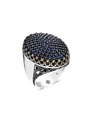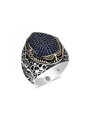 Gümüş Lacivert Zirkon Taşlı Kare Erkek Yüzük