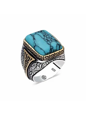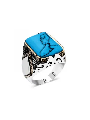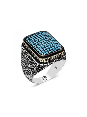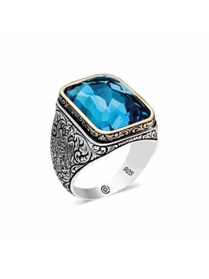 Gümüş Lacivert Zirkon Taşlı Kare Erkek Yüzük