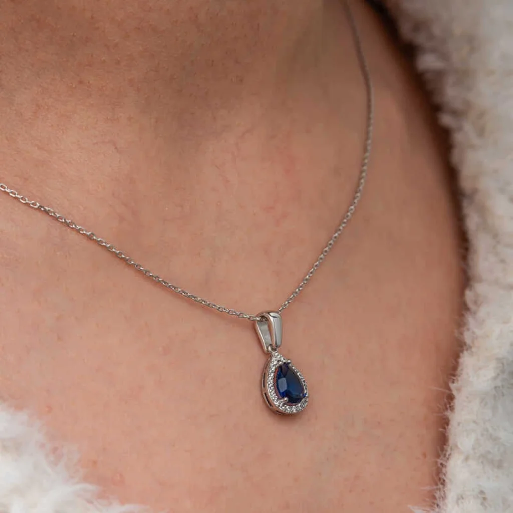 Gümüş Mavi Taşlı Damla Kadın Kolye