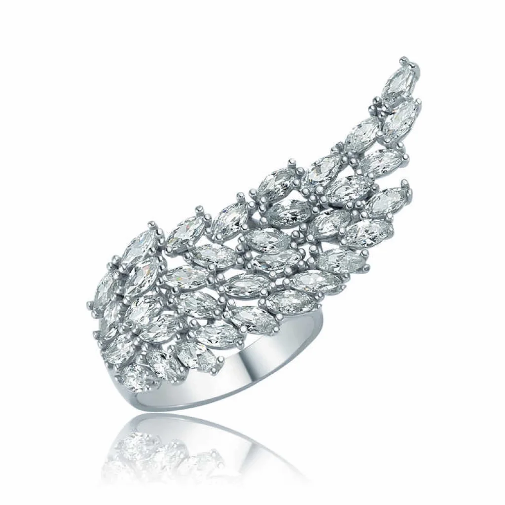 Melekler saflığın ve temizliğin simgeleridir. Bu nedenle melek yüzük hediye edilen kişiye melek kadar saf ve temiz olduğu mesajı verilmektedir... Bu şık yüzük; doğum günü hediyesi, sevgililer günü hediyesi veya annelere hediye olarak özel günlerde tercih edebilirsiniz. Bu özel melek kanadı tasarımı 925 ayar gümüşten imal edilmiştir. Gümüş üzerine rodyum kaplama yapılmıştır. Rodyum kaplama yapılan gümüş yüzükler parlaklığını uzun süre muhafaza eder, gümüşü sarı rengine dönüştürür ve oksitlenmesi gecikir. Tüm bayan gümüş yüzüklerde olduğu gibi gümüş melek kanadı bayan yüzük de el emeği ile üretilmiştir. Gümüş ve değerli taşlar nedeniyle belirtilen ürün ağırlığında ± %10 sapma olabilmektedir.