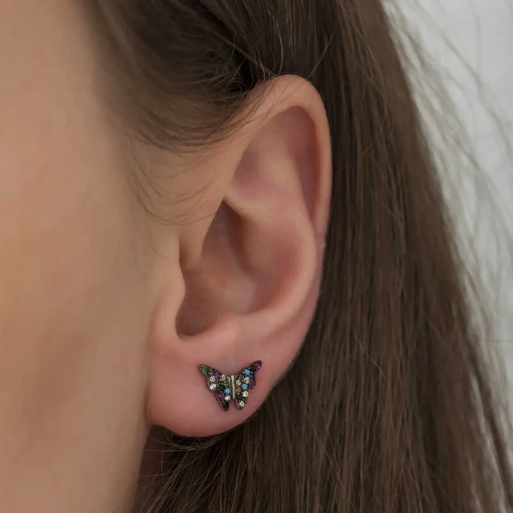 Her yaştan kadının stiline uyum sağlayabilecek farklı küpe modellerinin yer aldığı koleksiyonumuzda birbirinden özgün tasarımlı küpe modelleri sizleri bekliyor. Kelebek figürü kullanılarak hazırlanan küpe aklınızı başınızdan alacak. Günlük kullanıma uygun bir model olan küpe her an sizlerle birlikte. Göz kamaştıran yapısıyla tasarlanmış gümüş kelebek küpeyi severek kullanacaksınız. Bu koleksiyonda hem kendiniz, hem de sevdikleriniz için mutlaka uygun bir küpe bulacaksınız. Gümüş mix kelebek küpe, 925 ayar gümüşten imal edilmiştir. Gümüş üzerine rodyum kaplama yapılmıştır. Rodyum kaplama yapılan gümüş bayan küpeler parlaklığını uzun süre muhafaza eder, oksitlenmesi gecikir. Üzerinde bulunan renkli taşlar zirkondur. Tüm gümüş bayan küpelerde olduğu gibi bu gümüş mix kelebek küpe modeli de el emeği ile üretilmiştir. Gümüş ve değerli taşlar nedeniyle belirtilen ortalama ürün ağırlığında ± %10 sapma olabilmektedir.