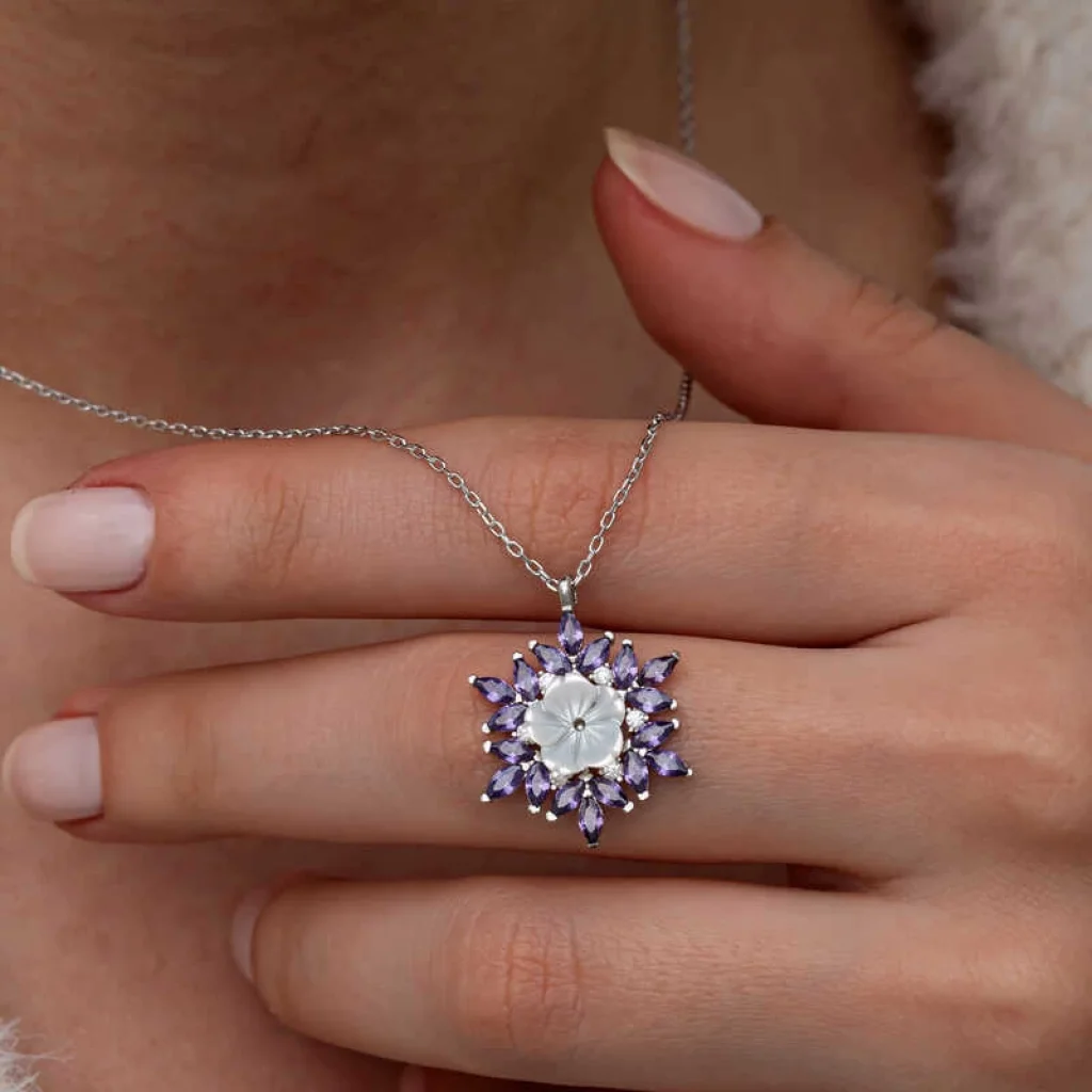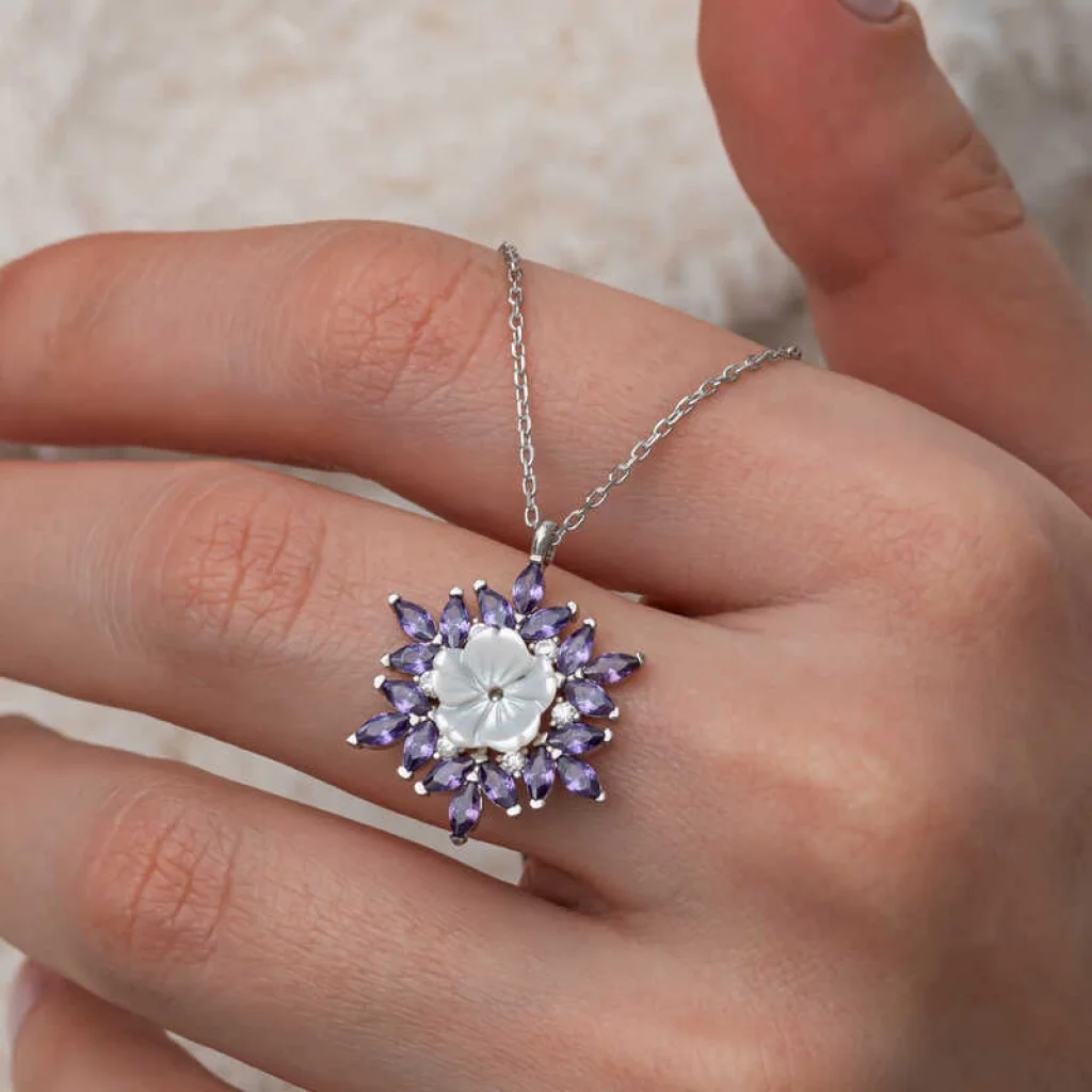Gümüş Mor Lotus Desenli Çiçek Kadın Kolye