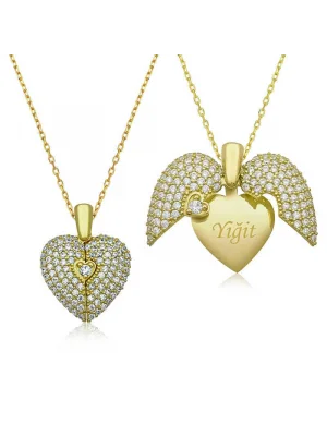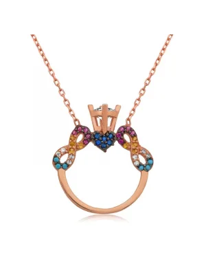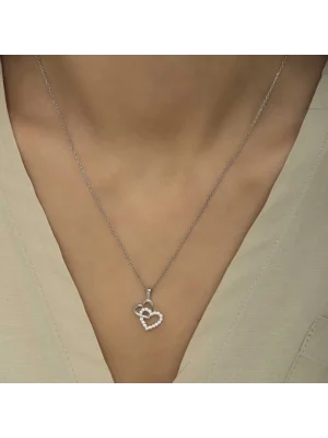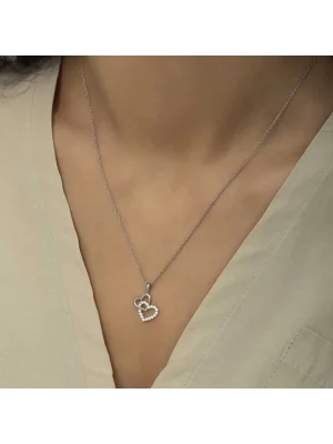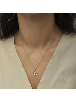 Gümüş Mor Taşlı Kalpli Kadın Kolye